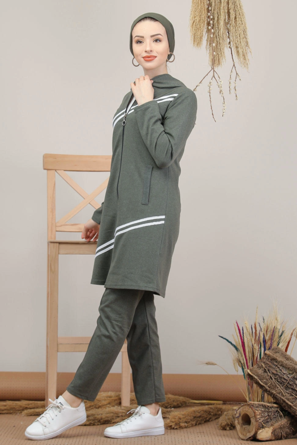 ملابس رياضية نسائية خضراء (زيتية) تصميم حديث وراقي – صناعة تركية
