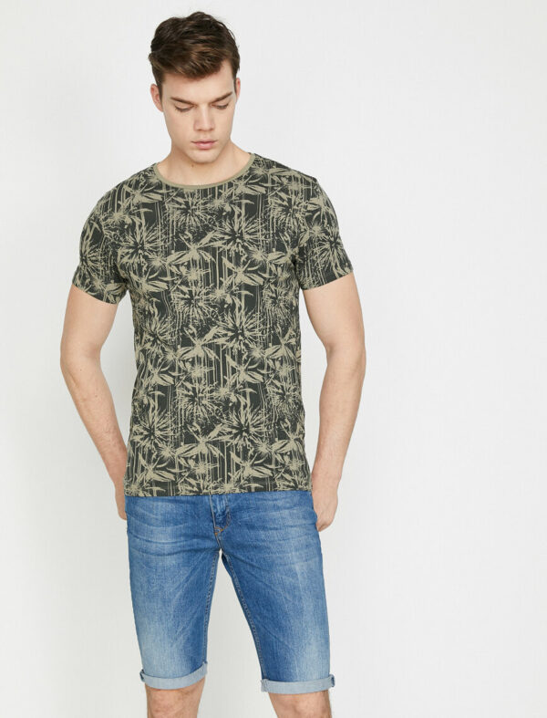 تي شيرت رجالي زيتي منقوش – صناعة تركية