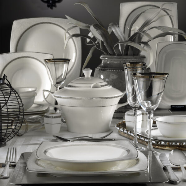 طقم أواني سفرة الطعام بورسلان عالي الجودة 62 قطعة لجميع المناسبات مع تصميم حديث وراقي: