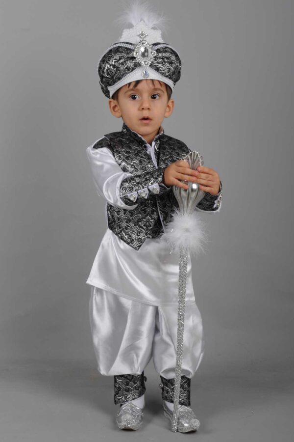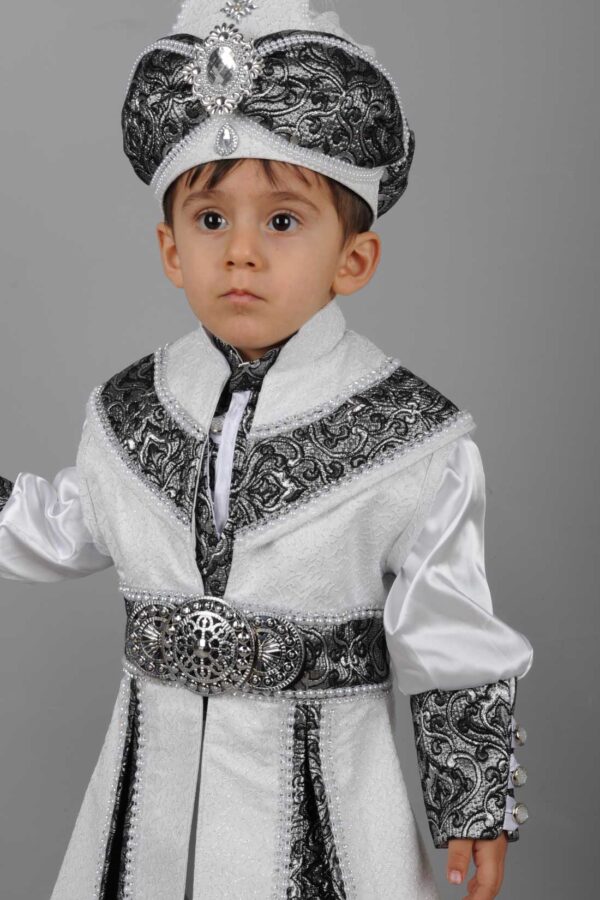 طقم ملابس للأولاد أبيض وفضي منقوش .. تصميم عثماني – صناعة تركية