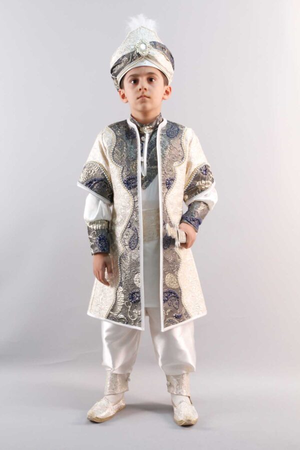 طقم ملابس للأولاد بيج فاتح منقوش .. تصميم عثماني – صناعة تركية