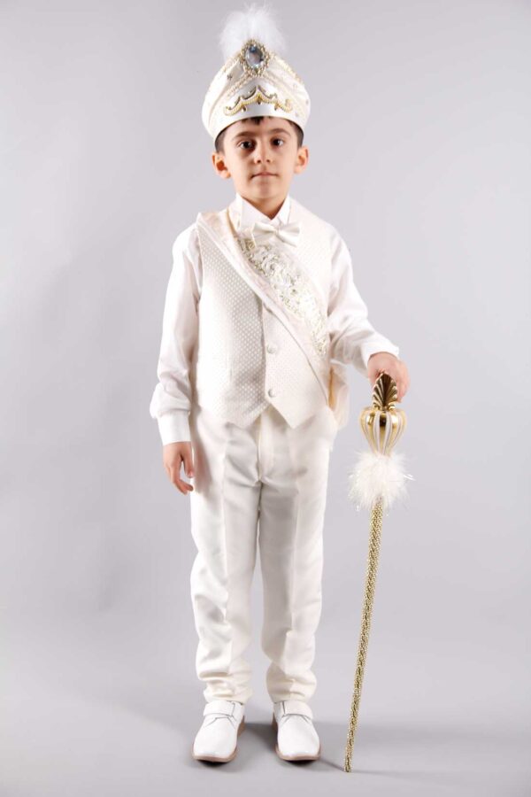 طقم ملابس للأولاد بيج فاتح منقوش .. تصميم عثماني – صناعة تركية