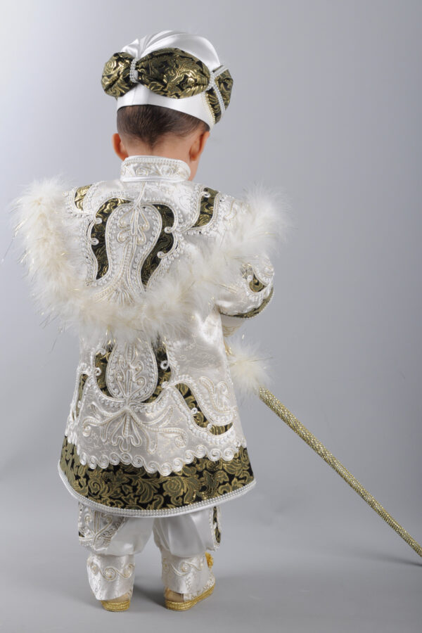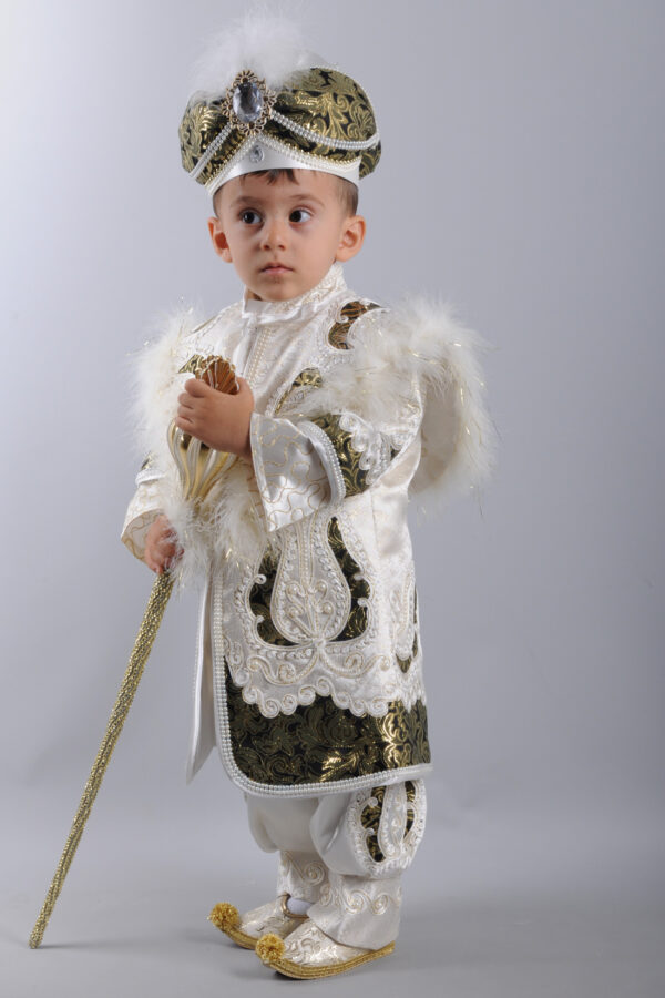 طقم ملابس للأولاد زيتي وبيج فاتح منقوش .. تصميم عثماني – صناعة تركية