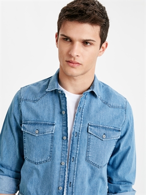قميص رجالي أزرق كم طويل تصميم جذاب – صناعة تركية