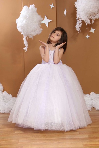 فستان بناتي عرايسي أبيض مائل للزهري الفاتح .. موديل وتصميم حديث صناعة تركية