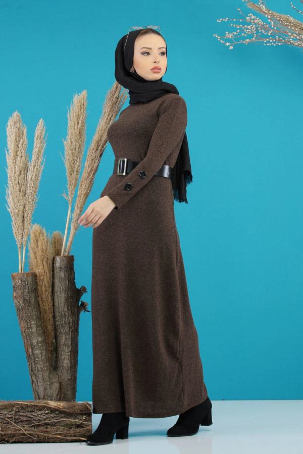 فستان نسائي بني تصميم حديث و رائع – صناعة تركية