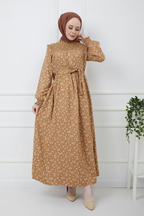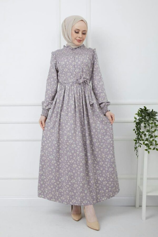 فستان نسائي منقوش مع حزام للخصر بتصميم عصري ورائع / صناعة تركية – بيع بالجملة