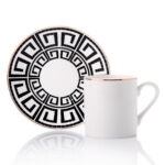 طقم فناجين قهوة أبيض مع أطباق مزخرفة تصميم راقي وحديث – صناعة تركية