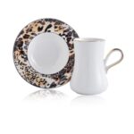 طقم فناجين قهوة أبيض مع أطباق ملونة تصميم رائع وجذاب – صناعة تركية