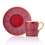 طقم فناجين قهوة أحمر مع زخرفة هندسية تصميم راقي وحديث – صناعة تركية