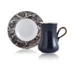 طقم فناجين قهوة أسود مع أطباق على شكل جلد الأفعى تصميم رائع وجذاب – صناعة تركية