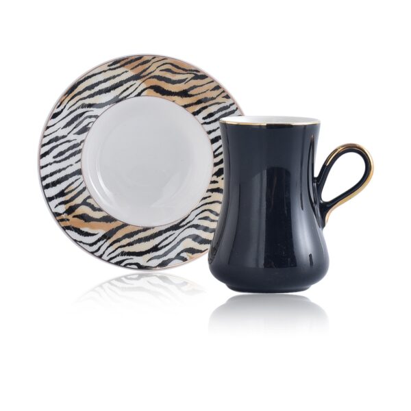 طقم فناجين قهوة أسود مع أطباق ملونة تصميم رائع وجذاب – صناعة تركية