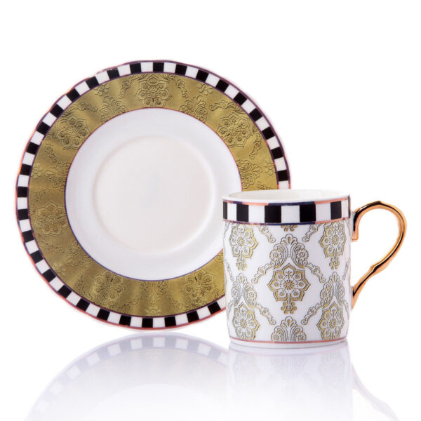 طقم فناجين قهوة ذهبي مع زخرفة نباتية تصميم حديث ورائع – صناعة تركية