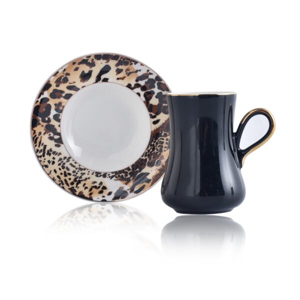 طقم فناجين قهوة سوداء مع أطباق ملونة تصميم رائع وجذاب – صناعة تركية