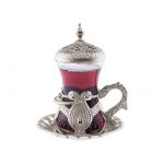طقم كاسات شاي 6 قطع مع غطاء صناعة تركية -فضي