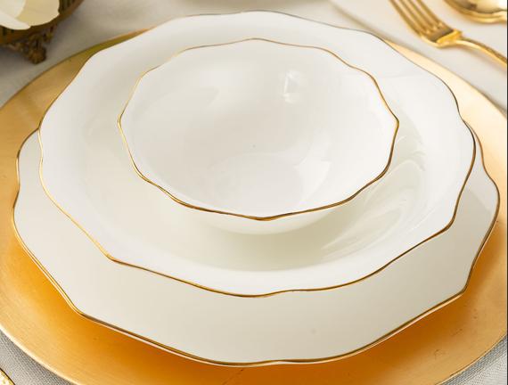 A golden dinner set consisting of 16 pieces, modern and sophisticated design – Turkish product