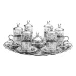 TEA PLATE SET GREAT STAINLESS STEEL – 6 Tea Cups of Turkish Tray Ornate – Silver