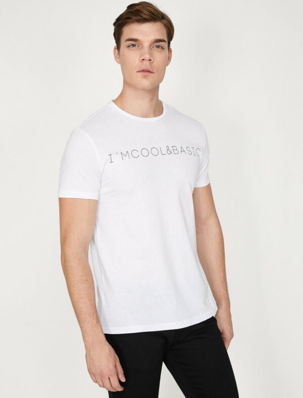 الوصف: كم قصير ، تي شيرت مع كتابة مطبوعة