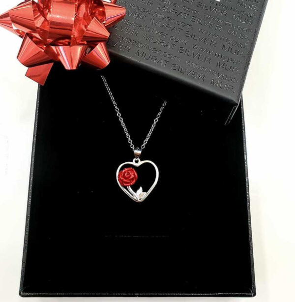 سنسال فضة أسترليني على شكل قلب مع وردة تصميم رائع وجذاب / صناعة تركية – بيع بالجملة