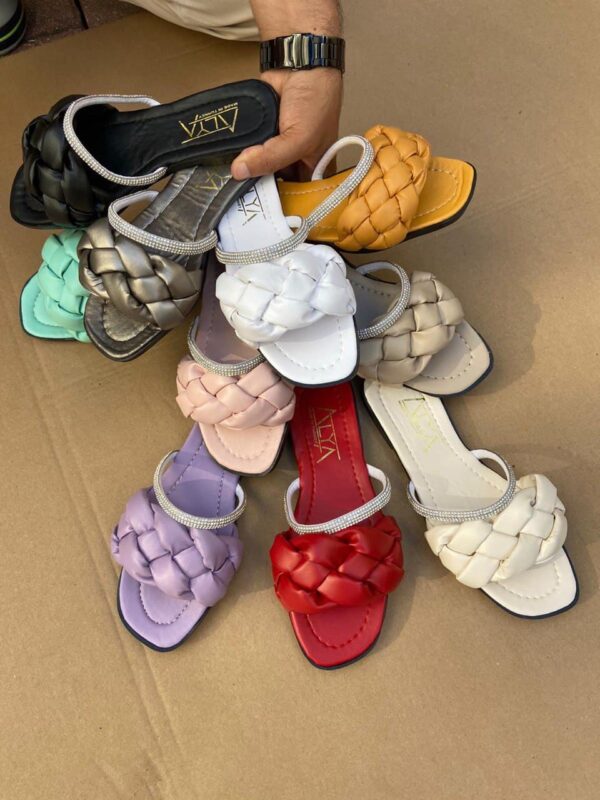 شبشب نسائي بألوان متعددة مرصع بالكريستال بتصميم حديث / صناعة تركية – بيع بالجملة