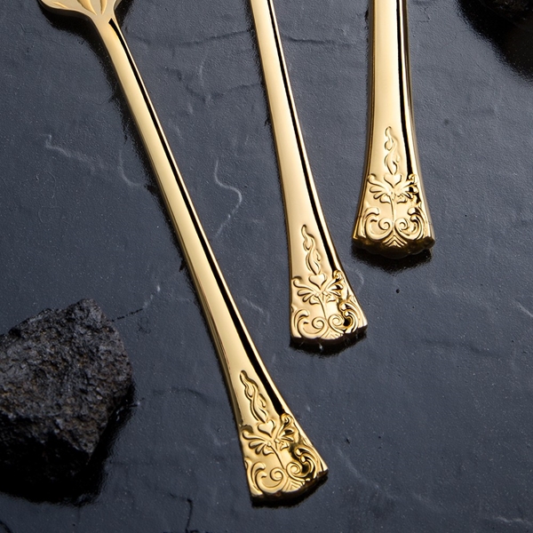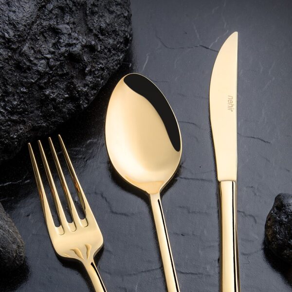طقم أدوات تناول الطعام تيتانيوم أكاسيا جولد عائلي مكون من 36 قطعة تصميم راقي وحديث بجودة عالية / صناعة تركية – بيع بالجملة