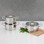 طقم أواني طهي فضة تصميم راقي وحديث بجودة عالية / ديب ستيل 6 قطع – صناعة تركية – بيع بالجملة