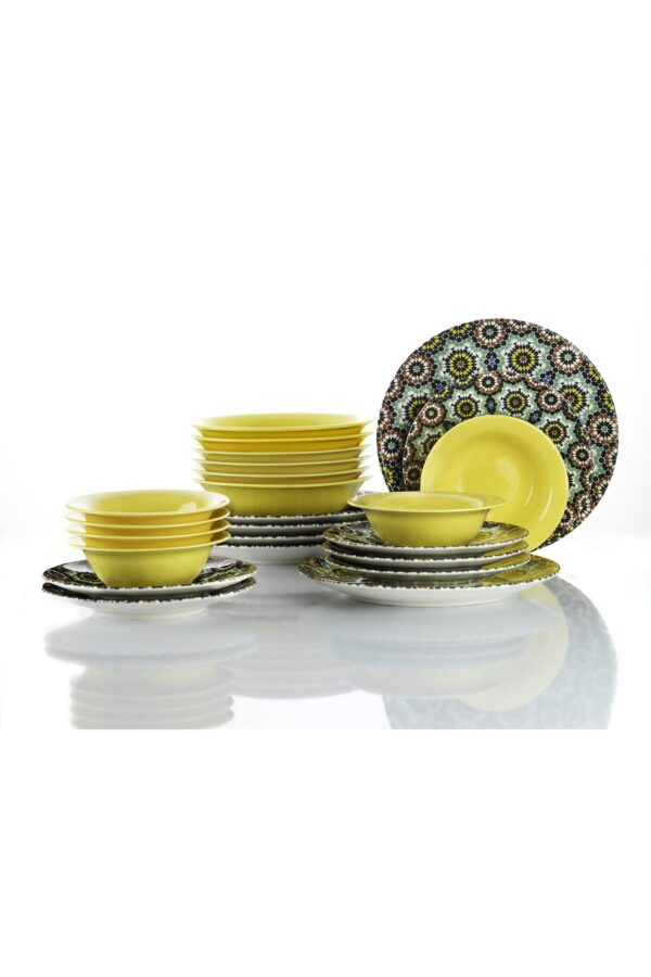 طقم صحون سفرة بورسلان مزخرف تصميم حديث وراقي 24 قطعة – صناعة تركية