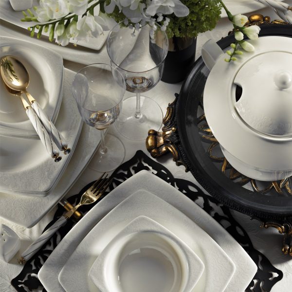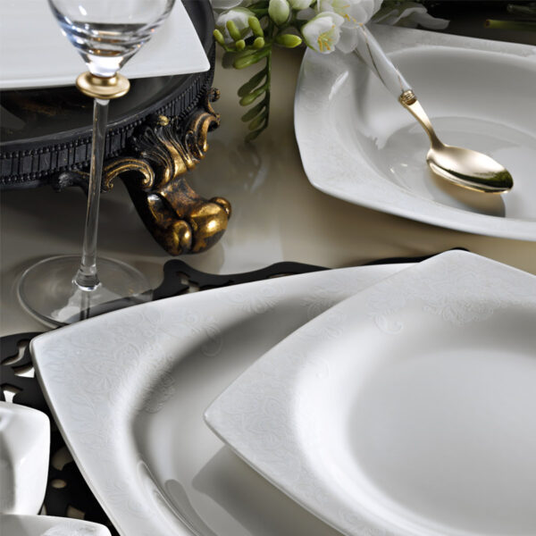 طقم صحون طعام 62 قطعة منقوش – صناعة تركية