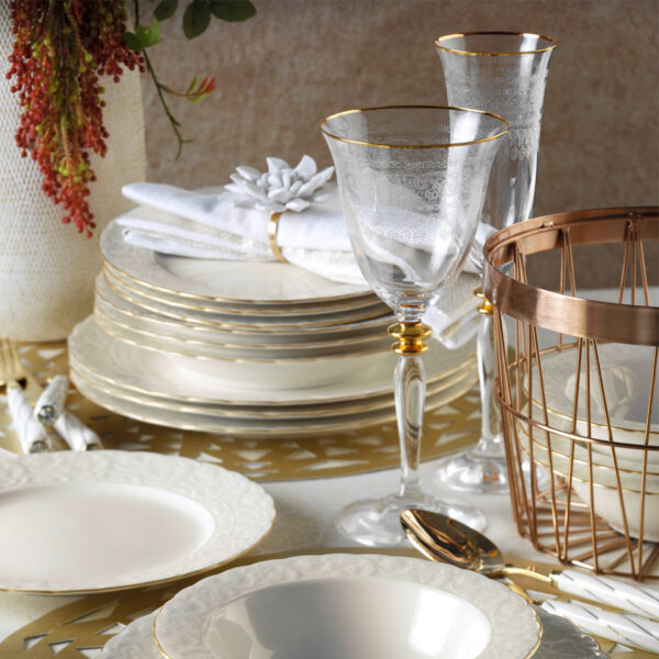طقم أواني سفرة الطعام بورسلان عالي الجودة صناعة تركية 24قطعة لجميع المناسبات مع تصميم حديث وراقي