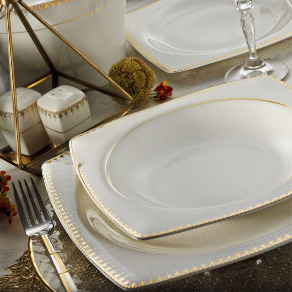 طقم أواني سفرة الطعام بورسلان عالي الجودة 62 قطعة لجميع المناسبات مع تصميم حديث وراقي: