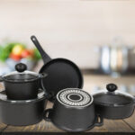 طقم طناجر طبخ أسود 9 قطع تصميم حديث وراقي – صناعة تركية