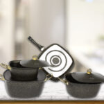 طقم طناجر طهي أسود وذهبي 7 قطع تصميم حديث وراقي – صناعة تركية