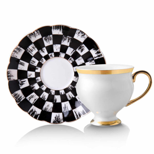 طقم فناجين قهوة أبيض مع أطباق مزخرفة تصميم حديث ورائع – صناعة تركية