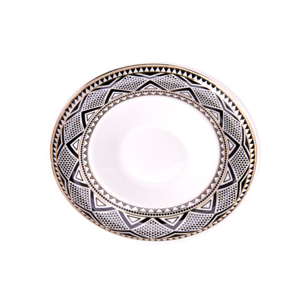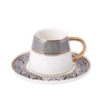 طقم فناجين قهوة أبيض وذهبي مع زخرفة سوداء تصميم حديث وراقي – صناعة تركية