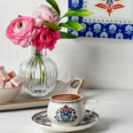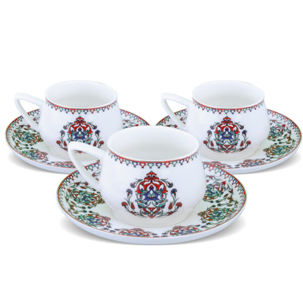 طقم فناجين قهوة أبيض مع زخرفة نباتية تصميم حديث ورائع – صناعة تركية