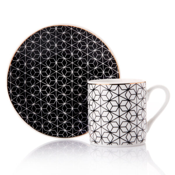 طقم فناجين قهوة أبيض وأسود مع زخرفة هندسية تصميم حديث وراقي – صناعة تركية