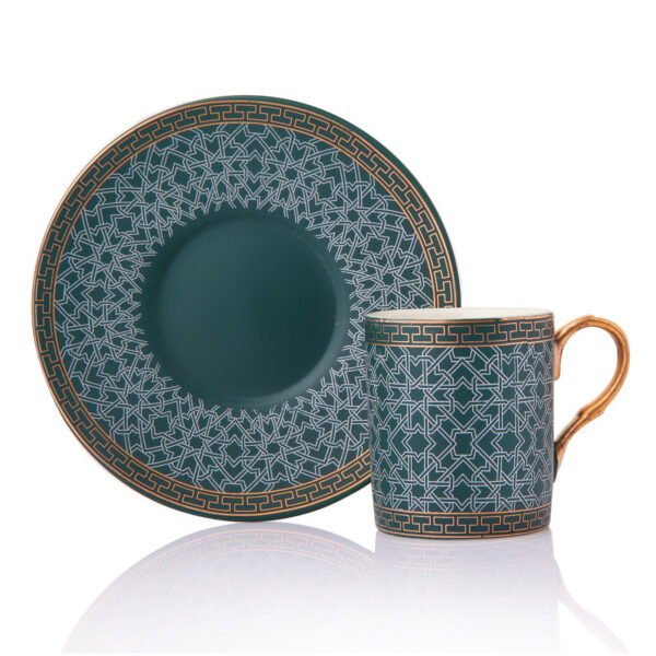 طقم فناجين قهوة زيتي مع زخرفة هندسية تصميم راقي وحديث – صناعة تركية