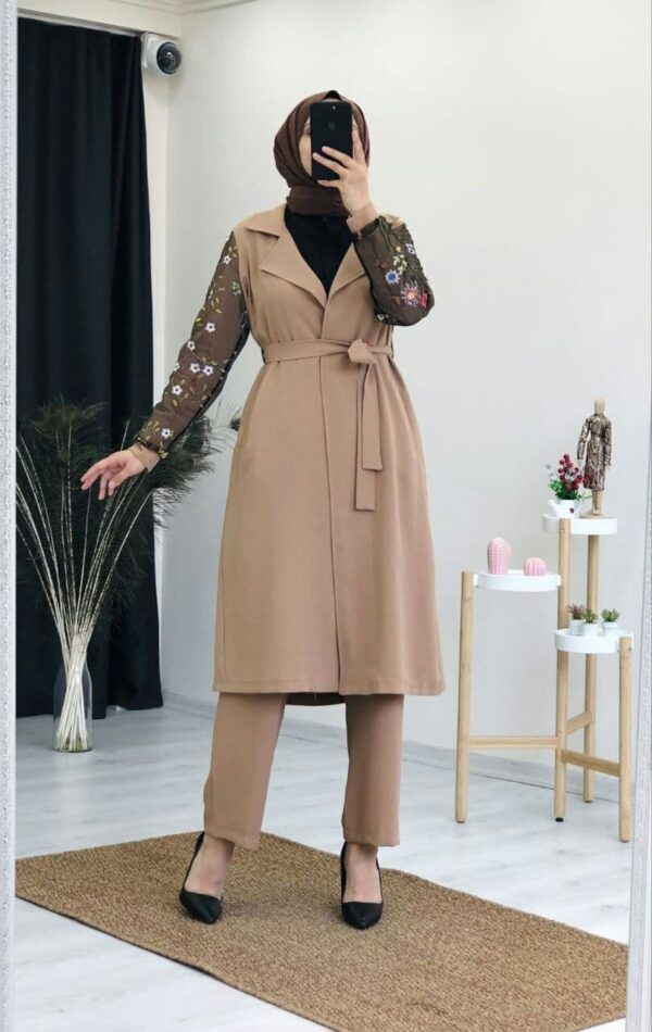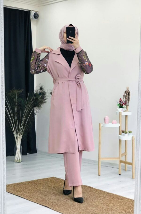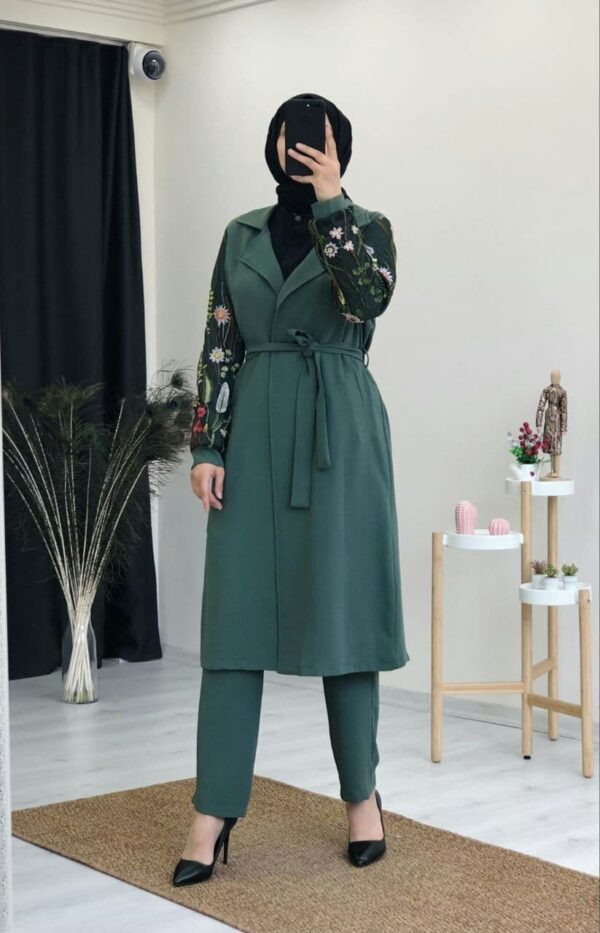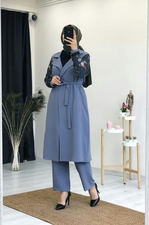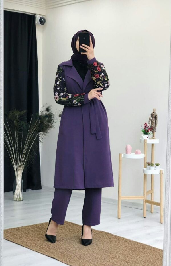 طقم نسائي قطعتين بأكمام مطبوعة تصميم عصري ورائع / صناعة تركية – بيع بالجملة