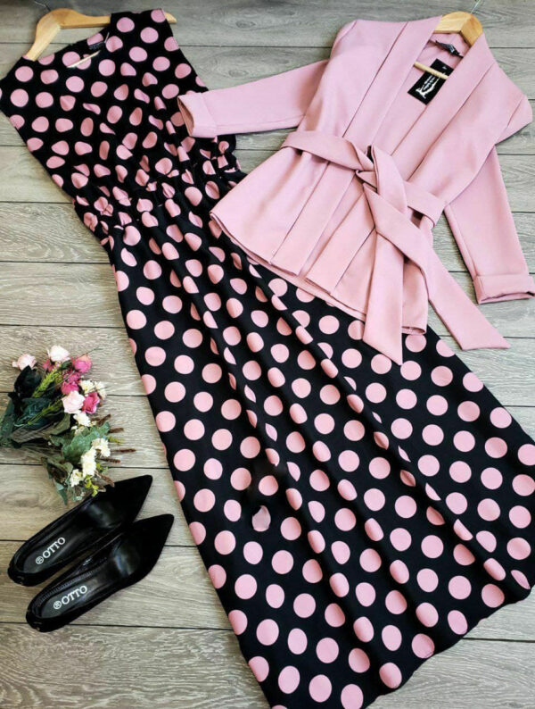 يتألف الطقم من : فستان + جاكيت