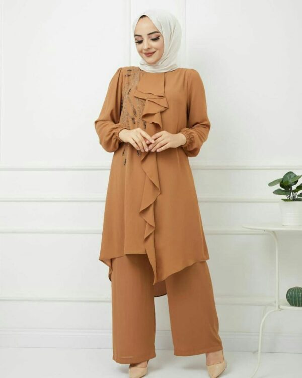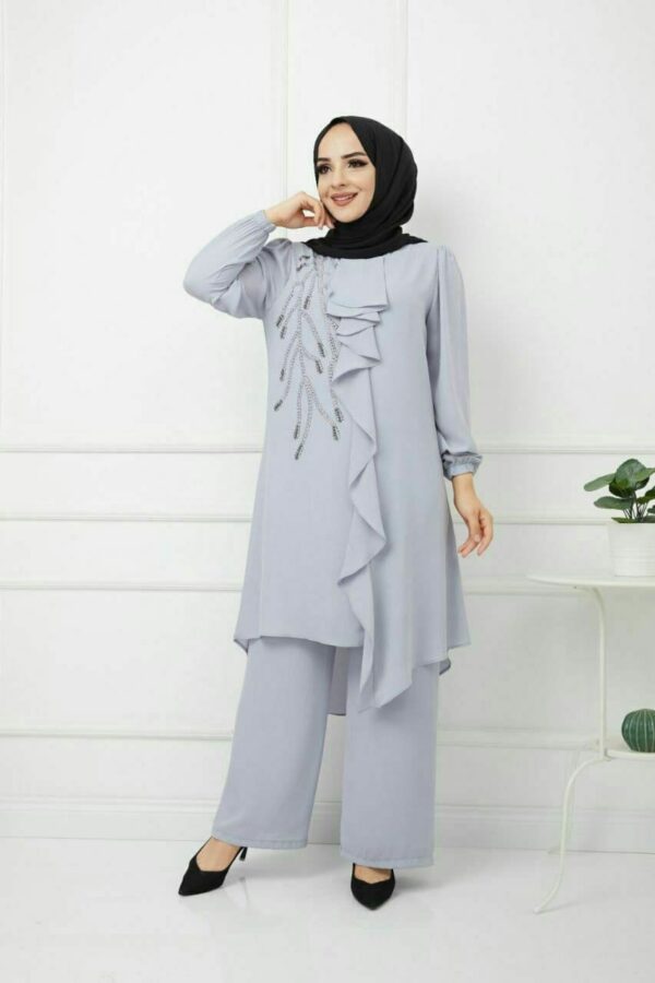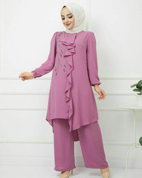 طقم نسائي قطعتين مزخرف بتصميم رائع وجذاب / صناعة تركية – بيع بالجملة