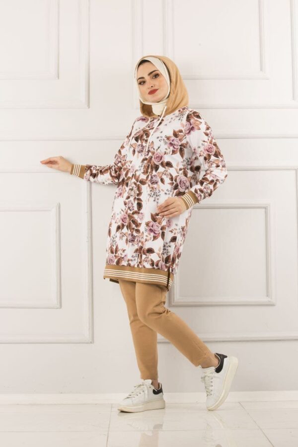 طقم نسائي قطعتين مع طبعات على شكل ورود بتصميم حديث ورائع / صناعة تركية – بيع بالجملة