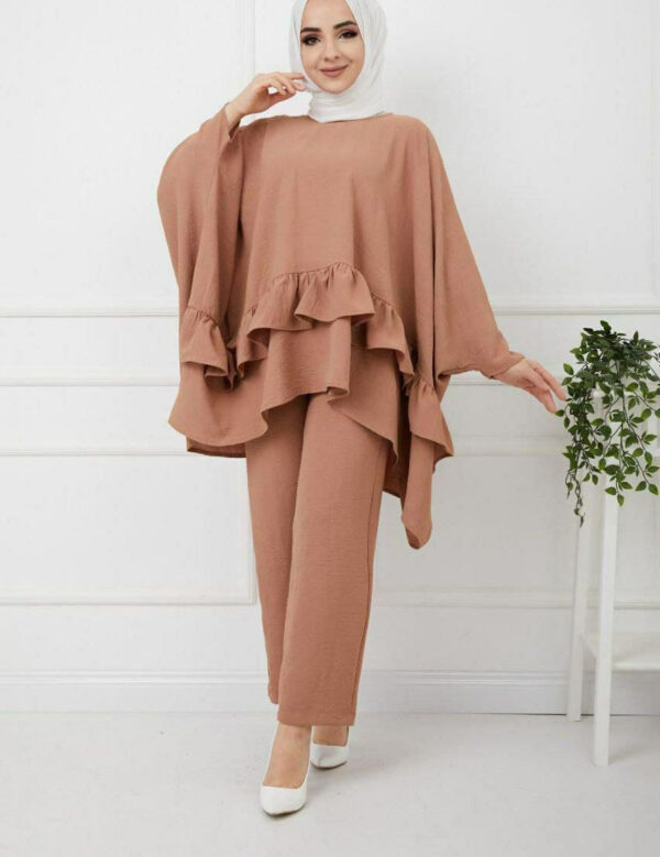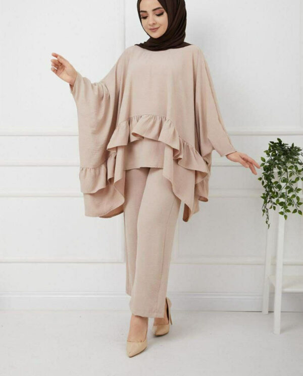 طقم نسائي قطعتين مكشكش بألوان مختلفة تصميم حديث ورائع / صناعة تركية – بيع بالجملة