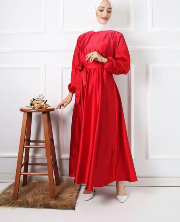 فستان نسائي مع رباط للخصر بتصميم حديث وراقي / صناعة تركية – بيع بالجملة