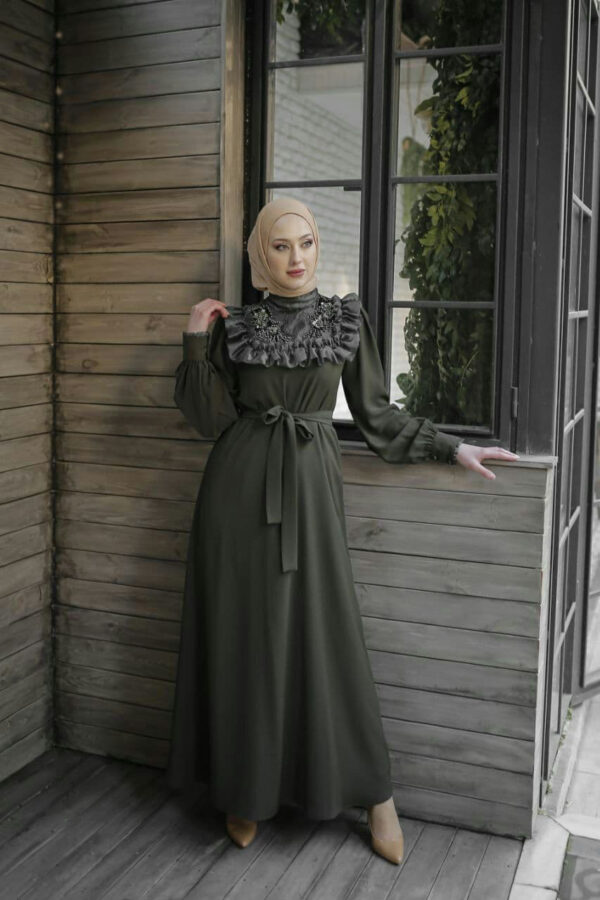 فستان نسائي مكشكش من الأمام بتصميم عصري وأنيق / صناعة تركية – بيع بالجملة