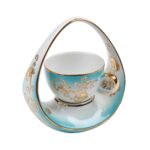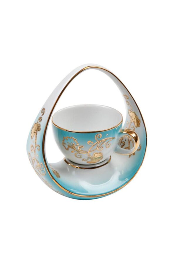 فنجان قهوة تركية صناعة يدوية بتصميم فاخر على شكل سلة – بورسلين تركوازي مزخرف