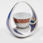 فنجان قهوة تركية صناعة يدوية بتصميم فاخر على شكل سلة – بورسلين مزخرف